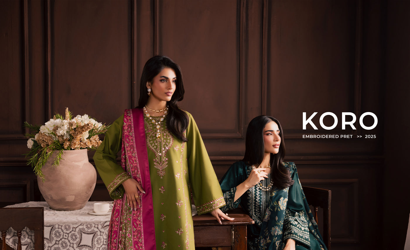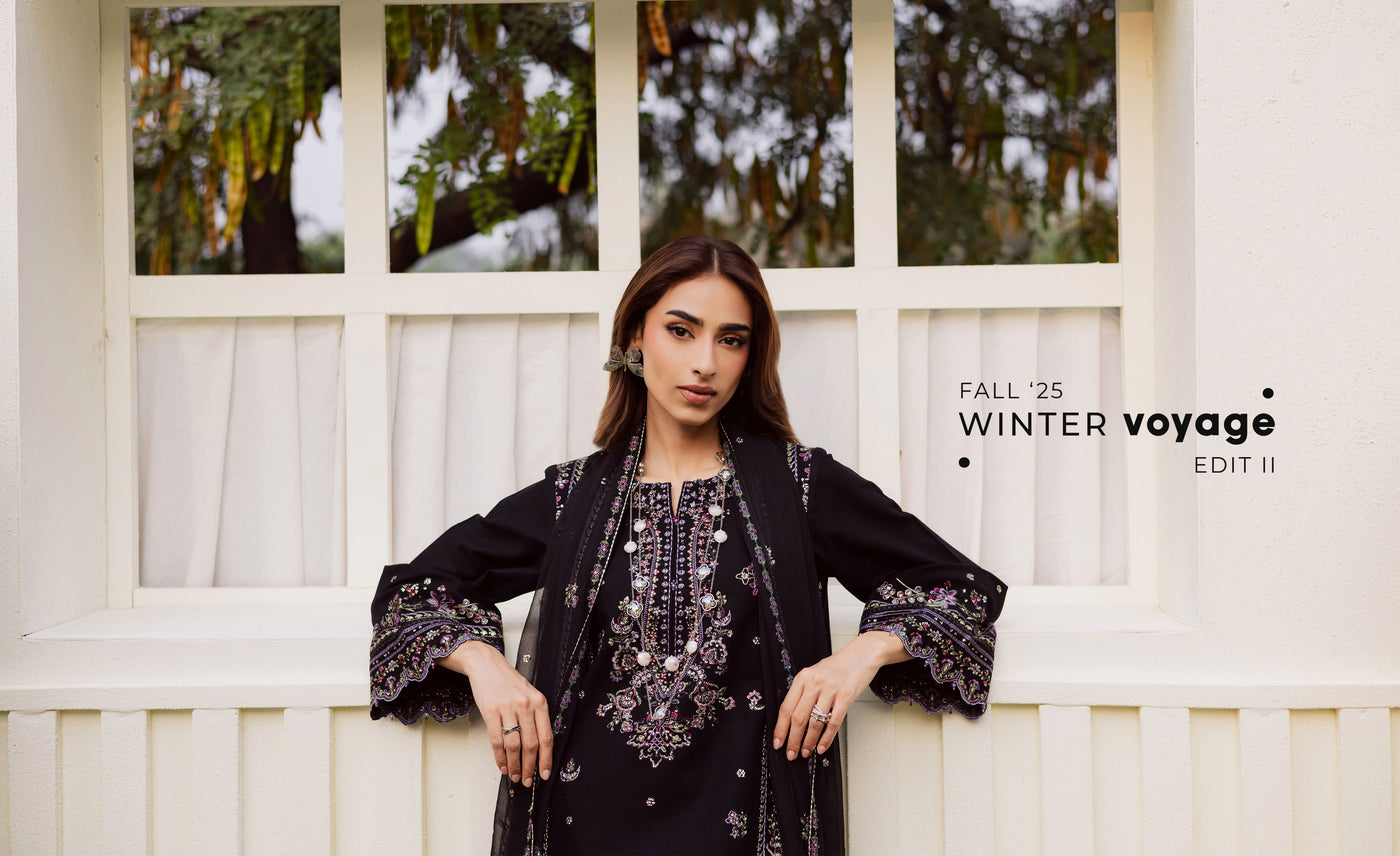 Paired with a beige shalwar adorned with an all-over embroidered spread, the outfit achieves perfect harmony between tradition and contemporary design. The subtle contrast and intricate detailing make this look effortlessly graceful, a timeless addition to any winter wardrobe.