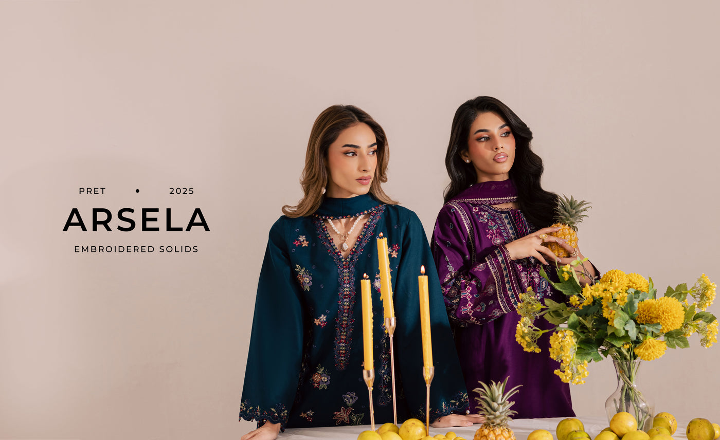 Make an elegant statement with this short paneled khaddar shirt, featuring a contrasting embroidered neckline that adds depth and character. The front showcases self-embroidered panels that bring subtle texture, while the fully embroidered sleeves enhance the design with refined craftsmanship and intricate detailing.