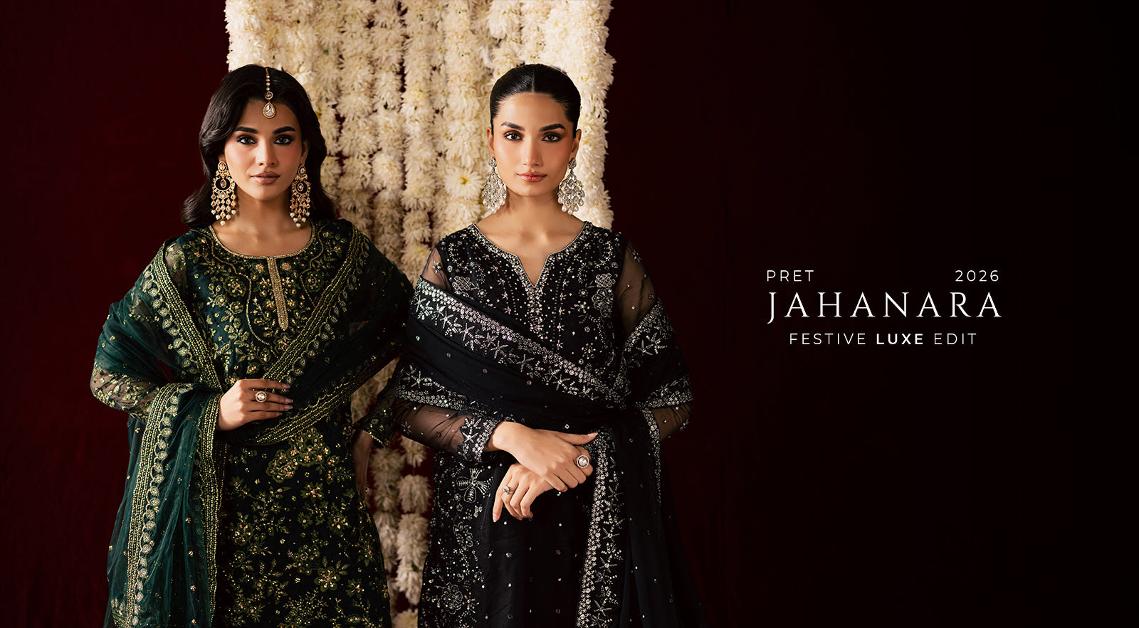 The net dupatta completes the ensemble with an embroidered floral border on all four sides, a sequin spread enriched with handwork accents, and soft pearl hangings along the edges. Light, ethereal, and radiant, it completes the look with perfect bridal grace.