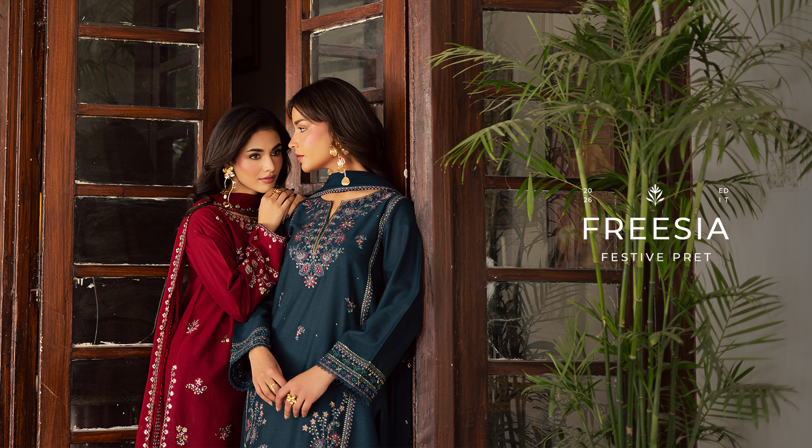 This three-piece khaddar set features a fully embroidered paneled shirt with beautifully composed detailing. An organza border finishes the shirt, adding a soft contrast that elevates the overall look.